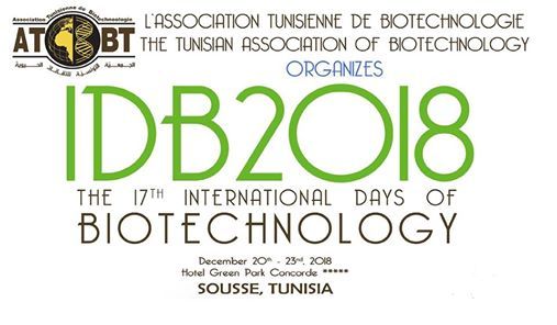 L’Association Tunisienne de Biotechnologie organise les 17 èmes journées internationales de la biotechnologie, IDB 2018 et ce du 20 au 23 Décembre 2018 à l’hôtel Green Park Concorde à Sousse.